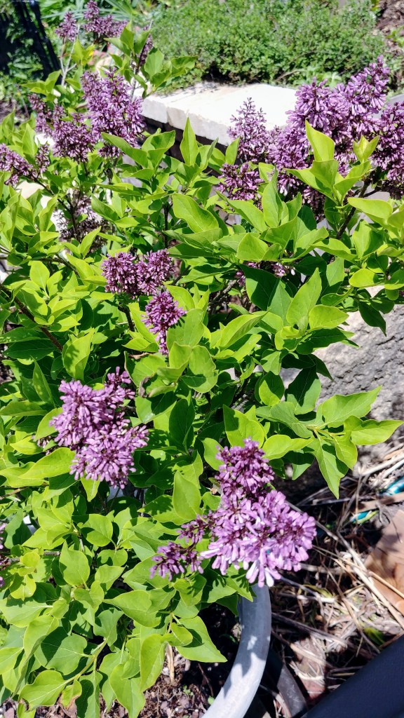 the blossoms on Tom’s lilac are maturing, perhaps a bit stunted since it is still waiting for its in-ground home.