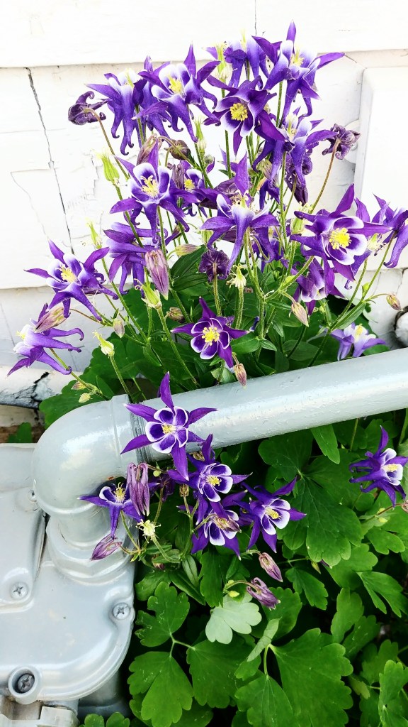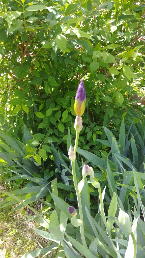 the irises from my father-in-law have filled out since planting back in our first year, many flower spikes jutting up, preparing for display