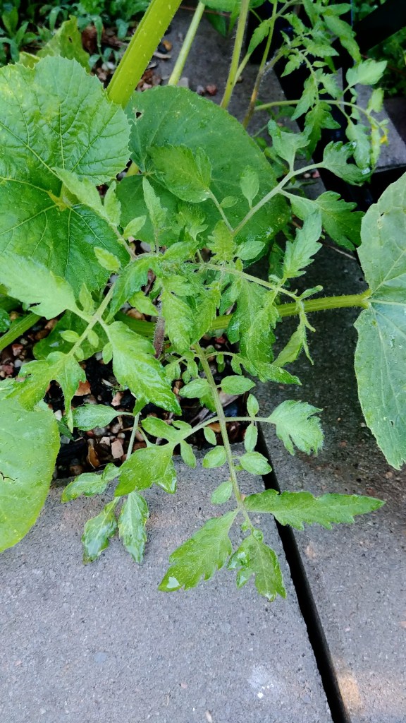 And this one below? That is a brand-new planter with purchased topsoil. On a five foot retaining wall over fifteen feet away from the tomato beds…