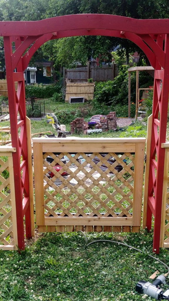 I plan to back the lattice panel of the driveway gate with cedar planks to create more privacy for what will become our patio space.