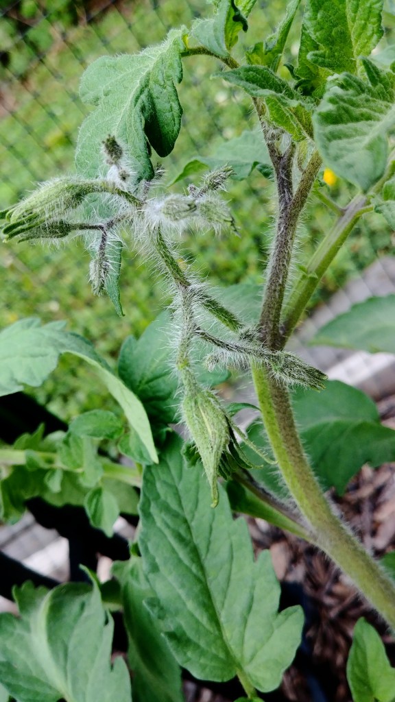 This gorgeous, fuzzy, frilly thing is what I’m assuming is a Black Beauty heirloom tomato. (I got my starts mixed up after sowing the seeds.)