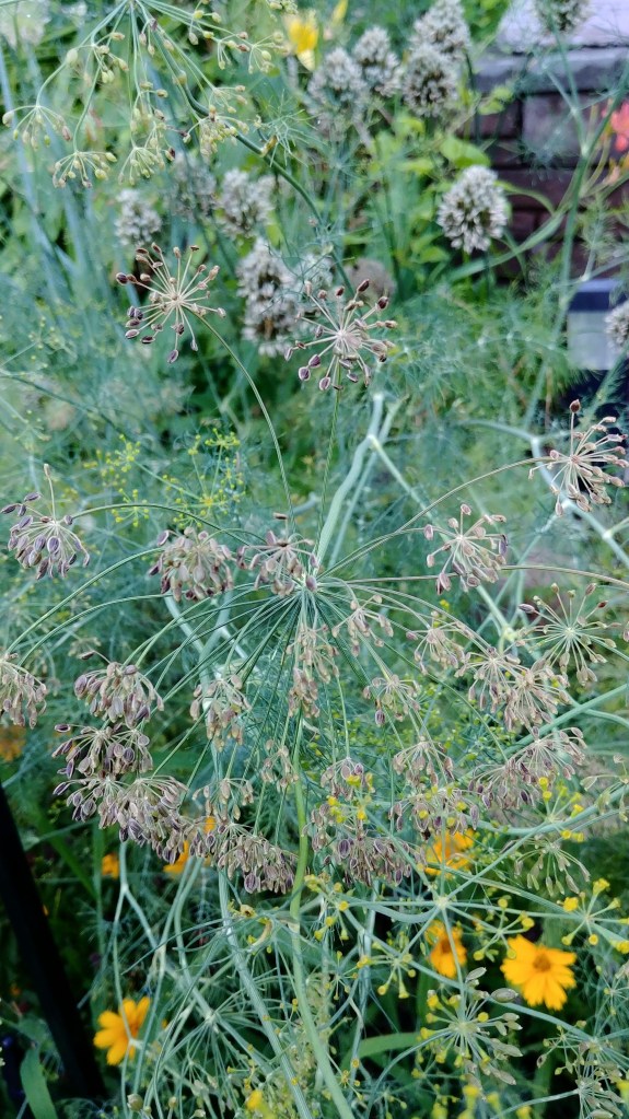 Additionally, the randomly scattered dill seeds (plus some volunteers from last year) were a huge success. the earliest blooms are now to seed.