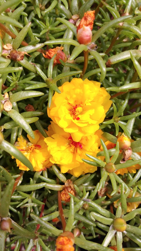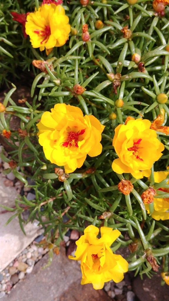 On to the mostly bit: where the gate path drops a half step, the portulaca is decidedly not thriving.