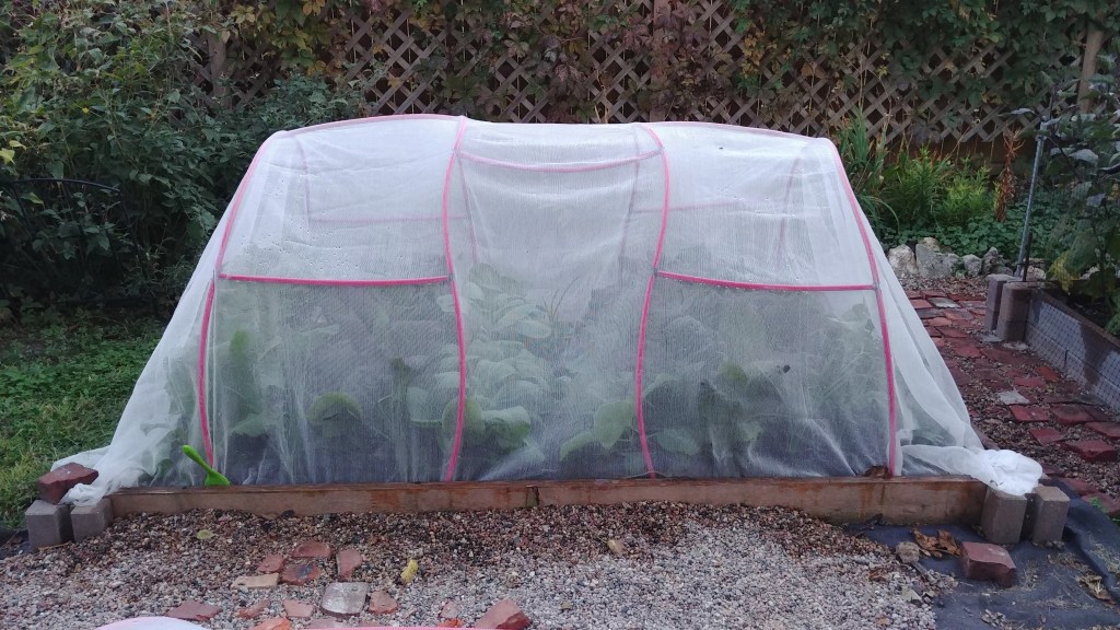 I think I’d like to explore an alternative to shoving the netting edge back into the dirt. Perhaps boards attached to the netting that clip to the bed…