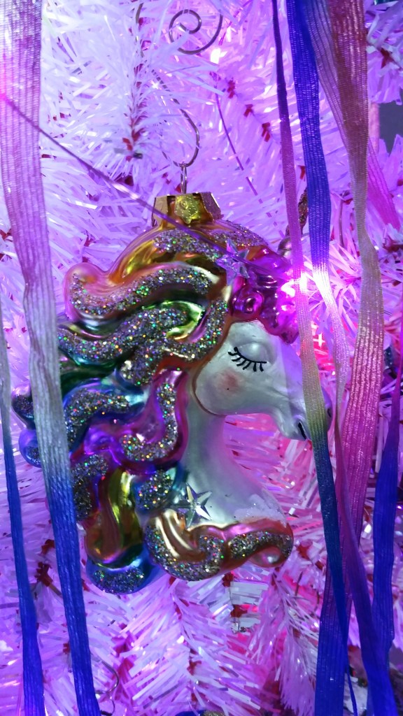 The teal tree that started the unicorn tree last year really needs to be the bedroom tree, so I was on the market for a new unicorn. I’ve always had pink in mind, but the one that set that tone disappeared from the market.
