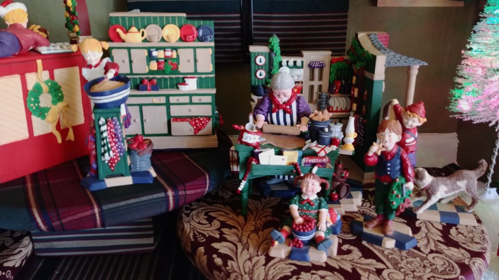 In the front room, Grandpa Joe reads stories while the children play with their Christmas day gifts, and family members gather at the dinner table as Aunt Martha serves a turkey as part of the day’s on-going feast. (I mean, look at all those kids, clearly they’re eating in shifts…)