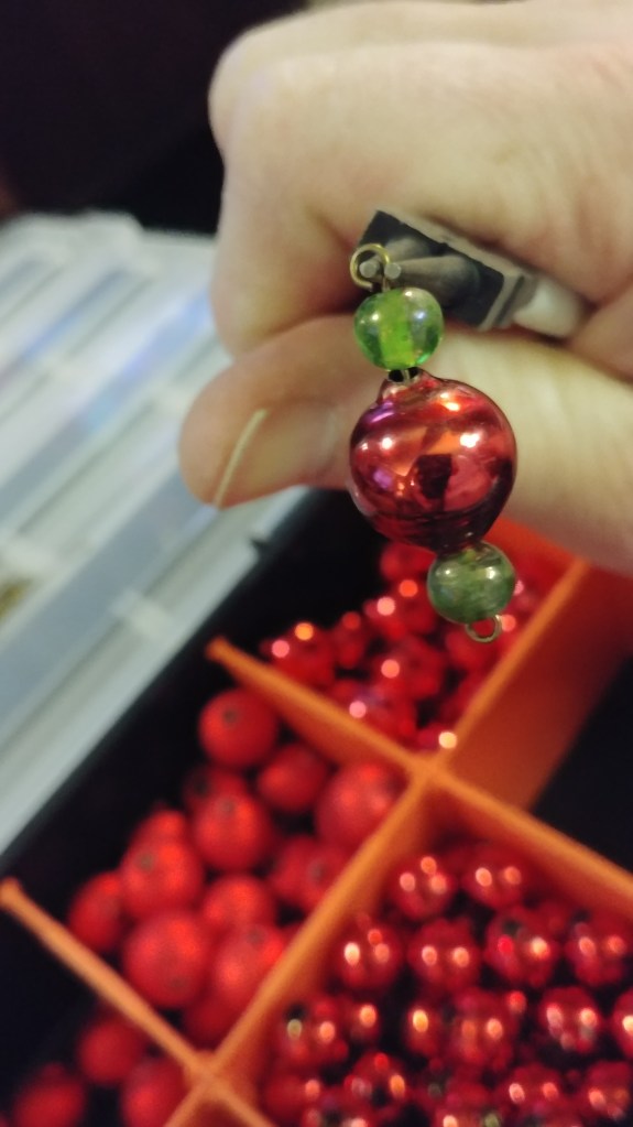 The first stage of the Great Beaded Garland Caper is to make individual beaded segments. Hundreds and hundreds of beaded segments…