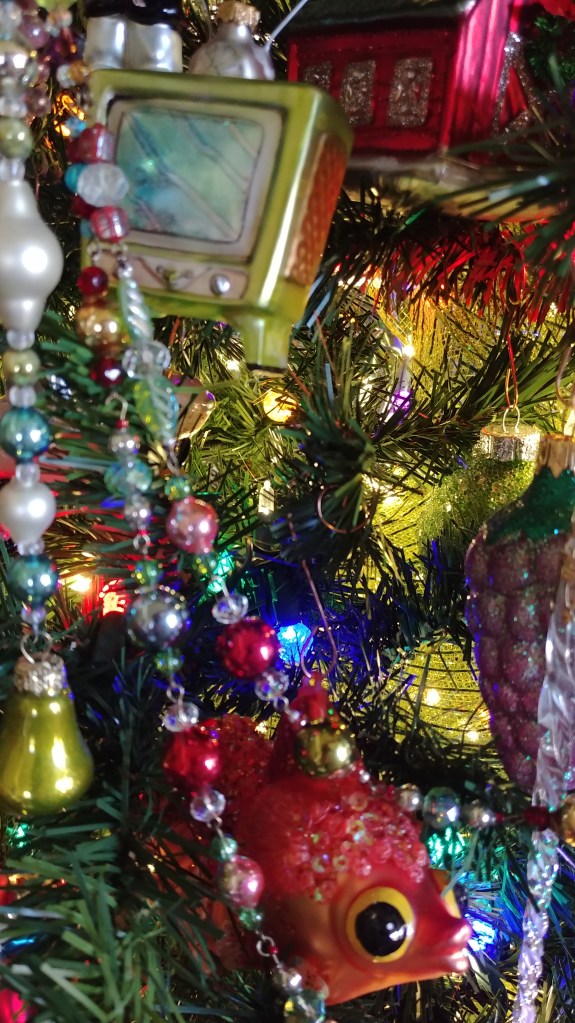 Knowing that future rounds of making new segments will involve different color sets, I’m leaving space between this round of garland, so the final results will have a consistent color variation throughout the tree.
