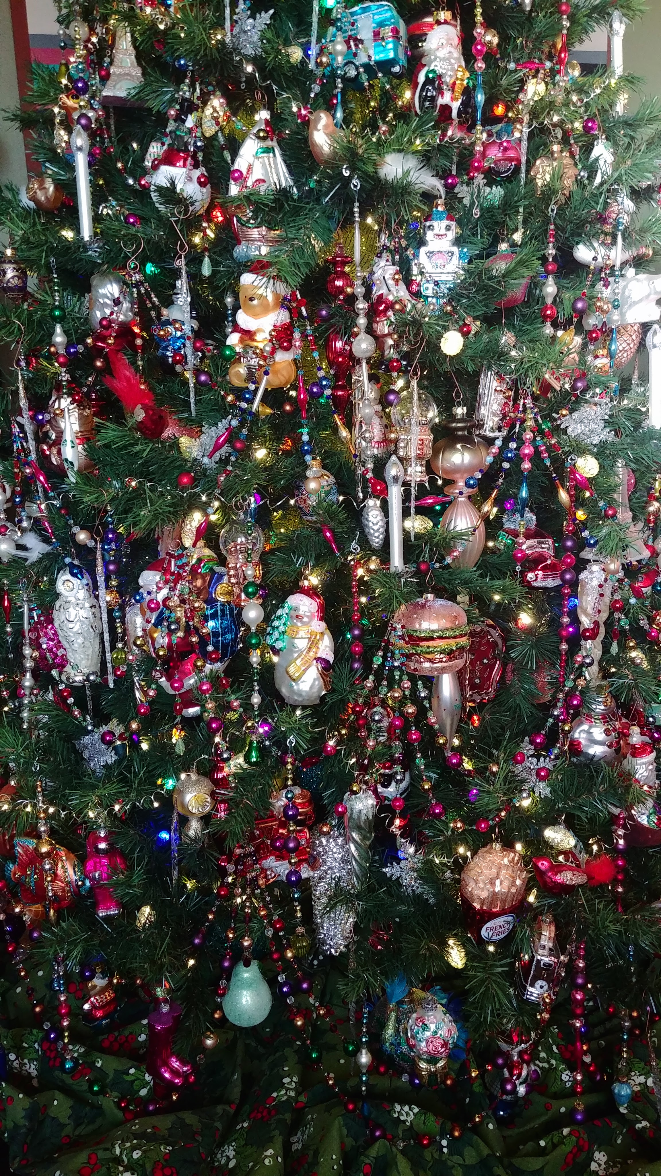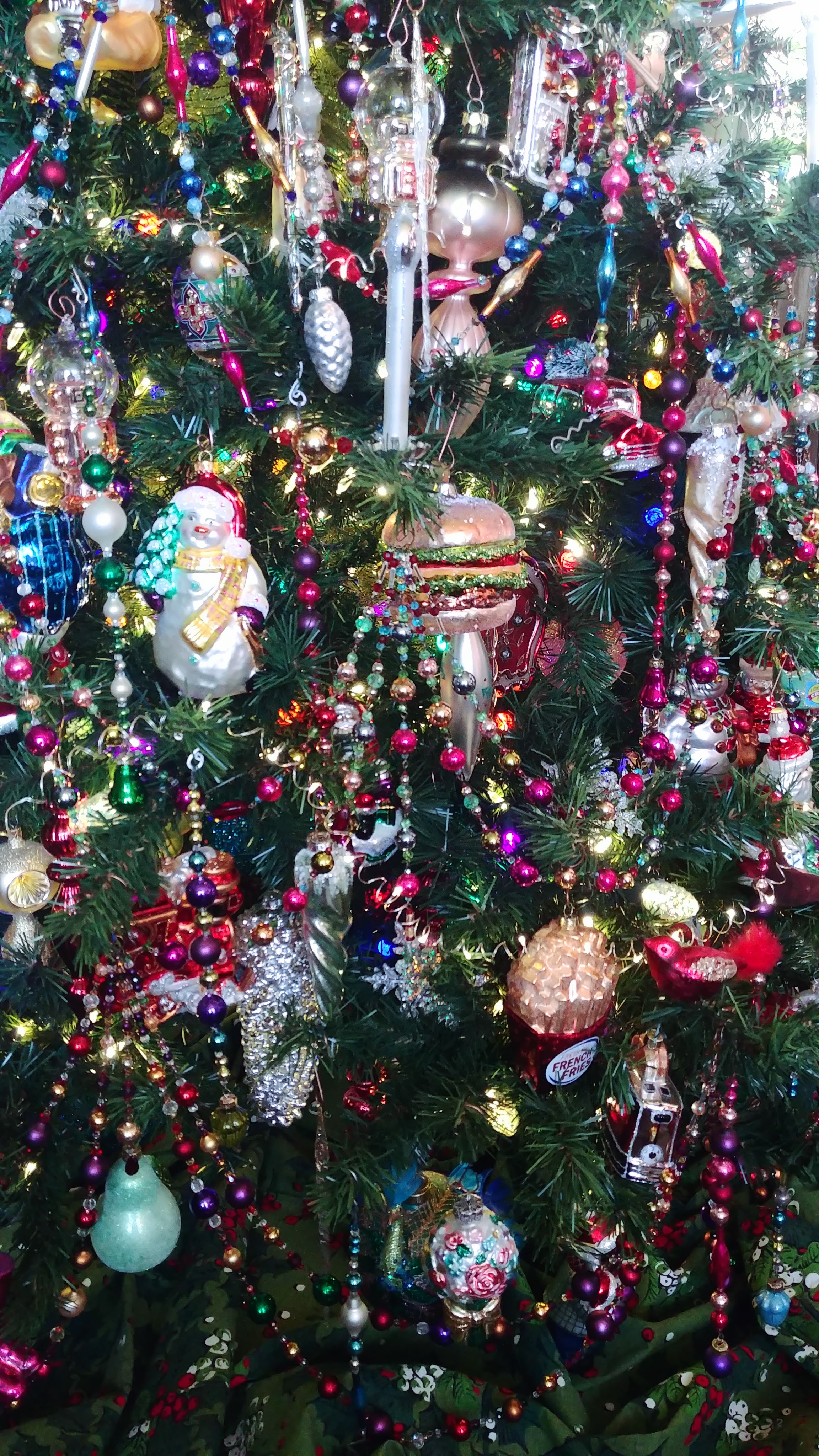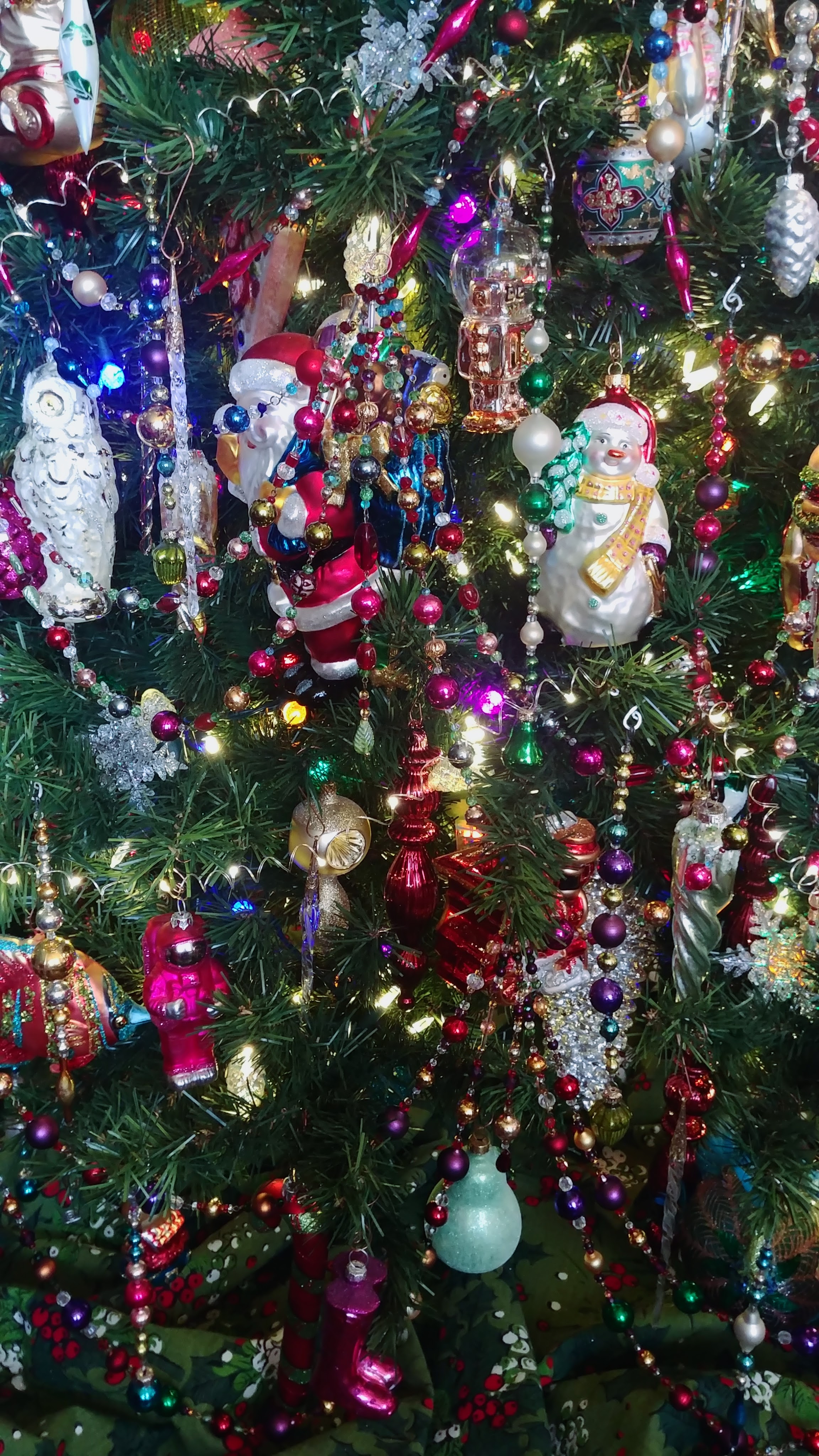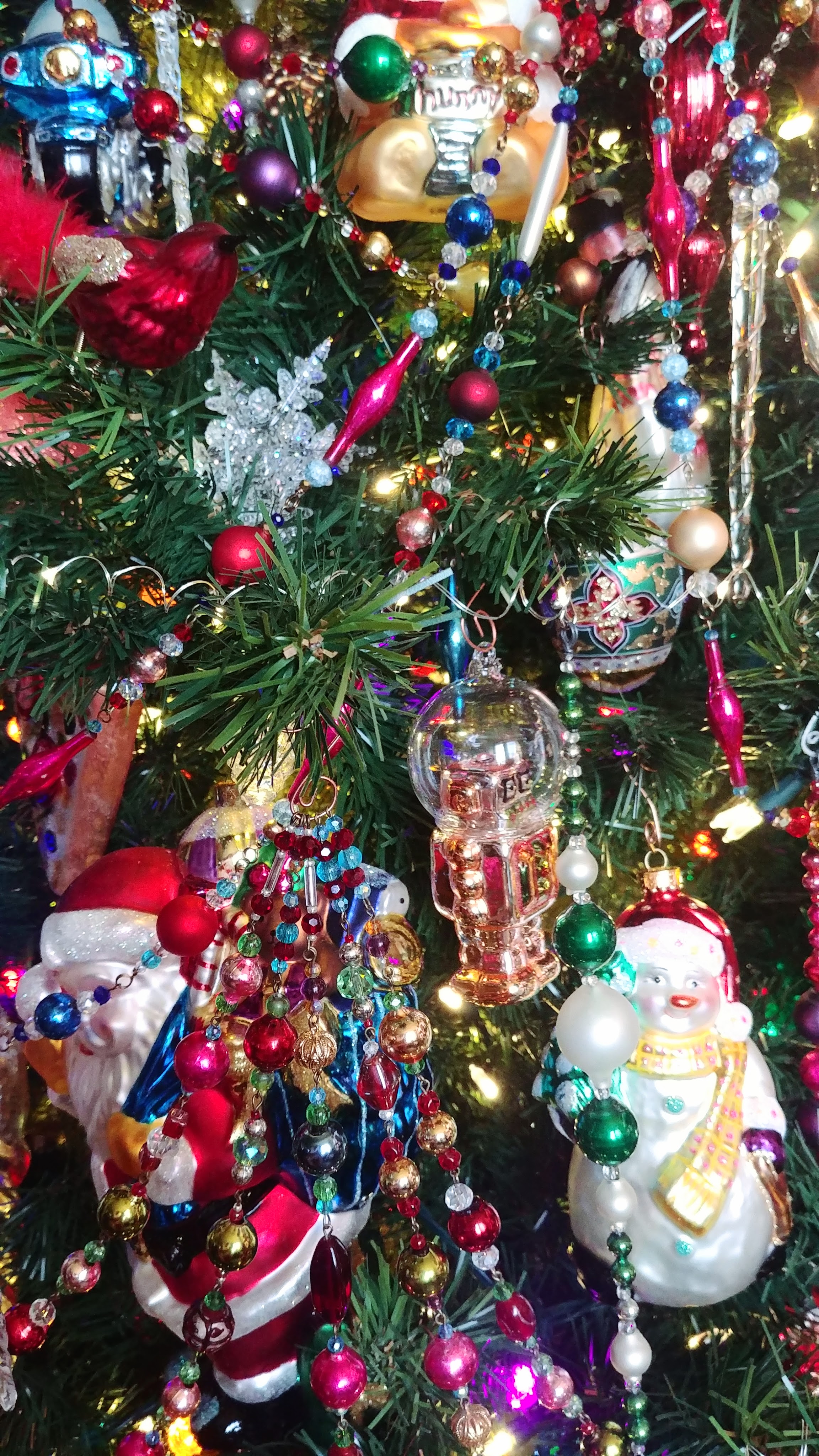 I’ve had my doubts regarding the craziness of this tree. While stringing the second set of garland, it looks a bit overdone and sloppy, but the third set helped it resolve and fill out to a satisfying balance. My goal was to dress a tree so heavily that it became one ginormous decoration instead of a tree holding numerous small ones. I think I achieved that!