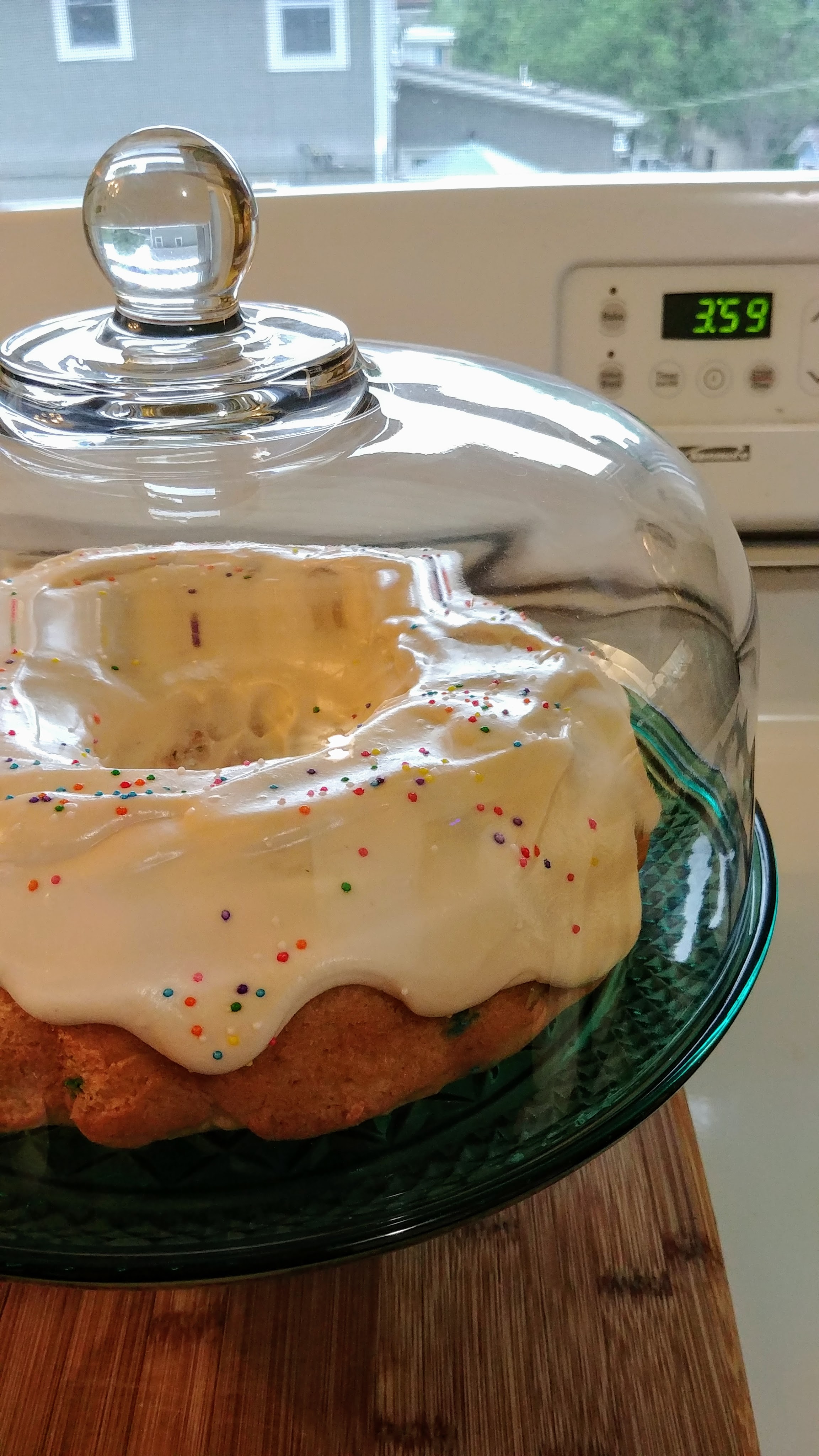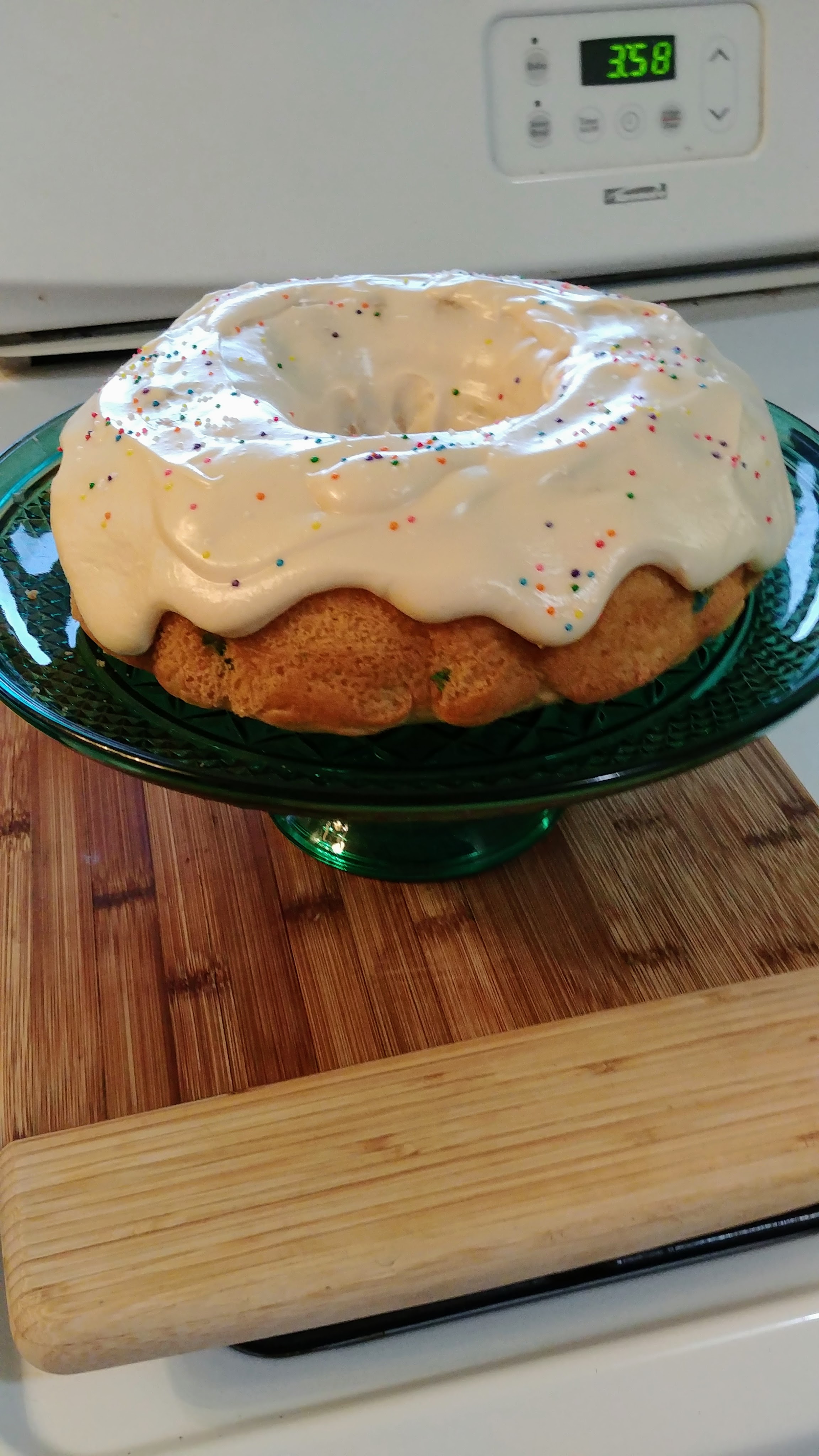 My husband and I have been seeking out gluten free mixes for various baked goodies. The first successful cake was here. It was a King Arthur gluten free chocolate cake mix, and it was delicious. So was the scratch-made cream cheese icing.