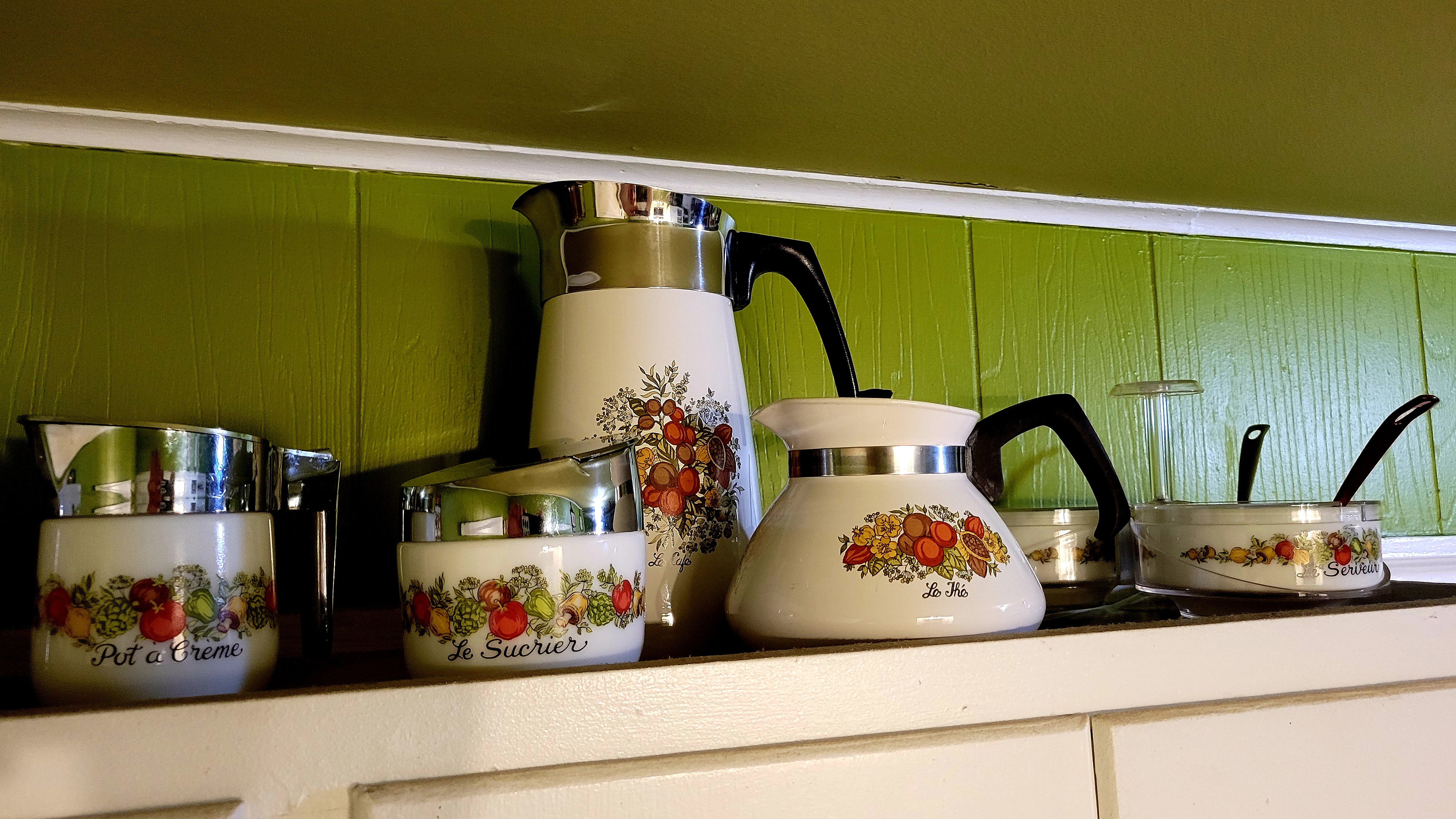 Then there is drink service, Gemco milkglass and CorningWare pyrex.