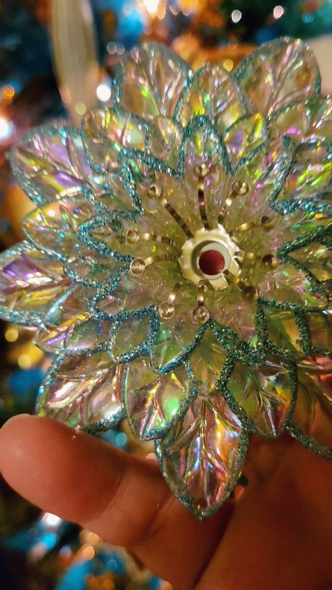 I mean, maybe they’re poinsettias… but glittery baby blue poinsettias? I had the teal peacock tree I mean, but baby blue? Luckily, I understand about illumination and reflection and have a decent relationship with color theory. So they came home with me.