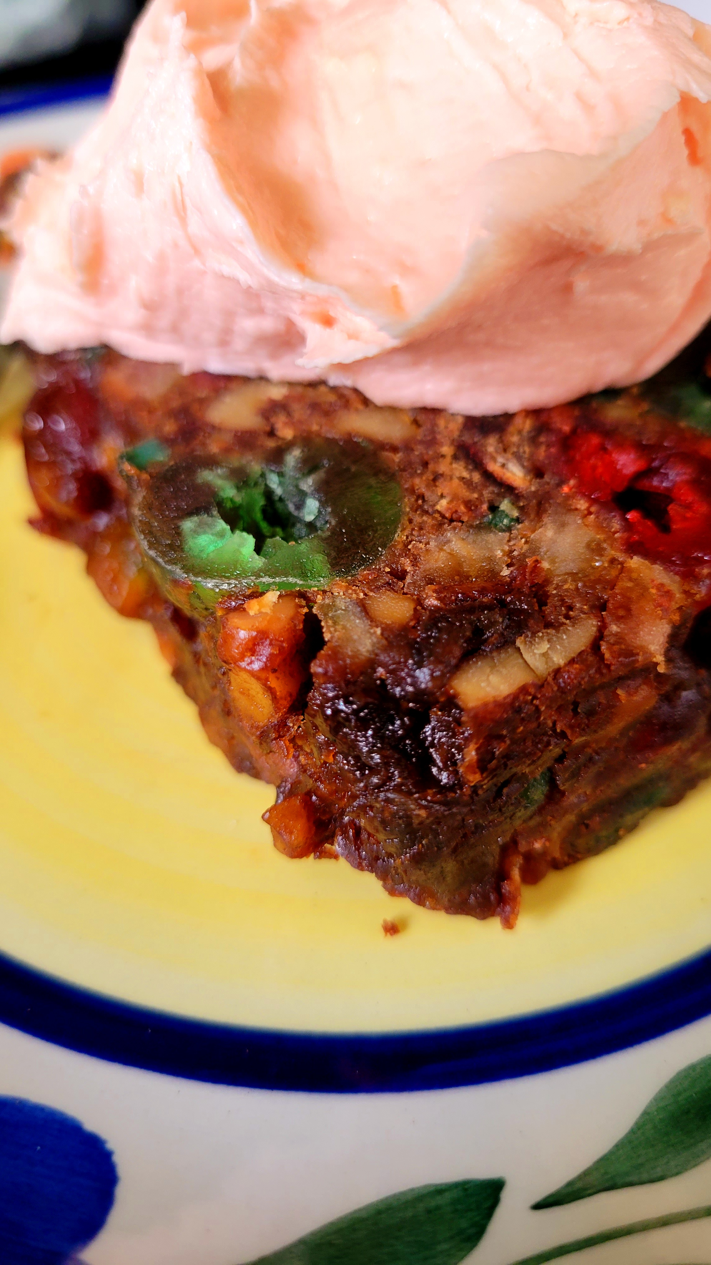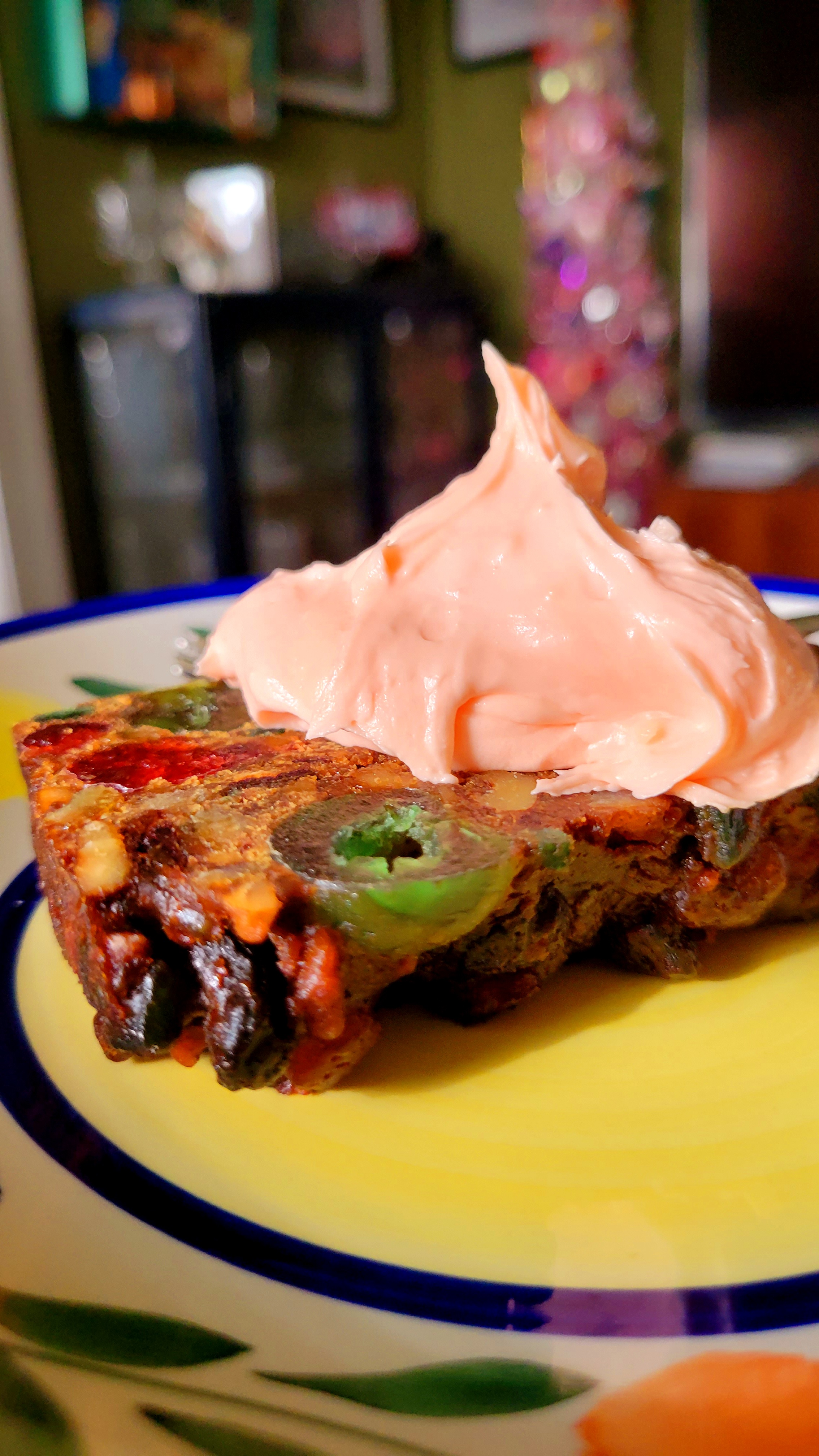 It isn’t wholly the holiday without my mom’s fruitcake. I never got mine last year due to the pandemic. So they thawed and enjoyed it over Thanksgiving, which is fine.