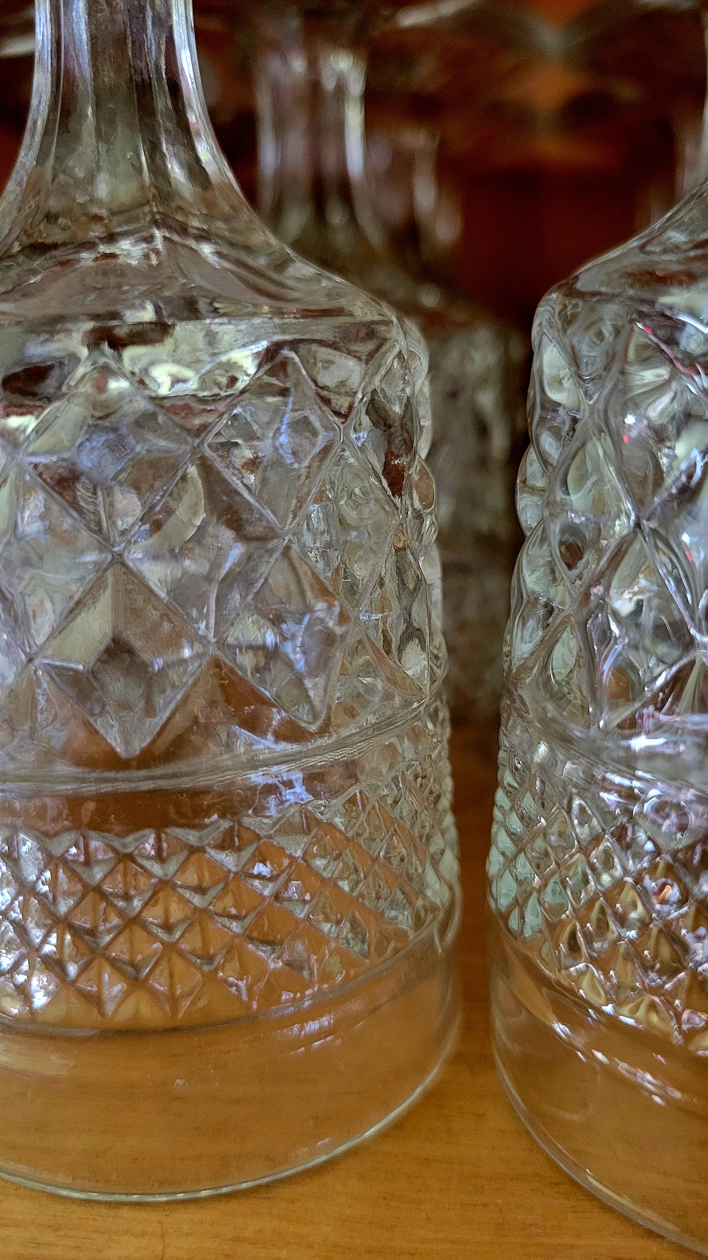 Until yesterday. I went to a more out-of-the-way Goodwill and checked through the glassware to no avail. In the checkout, an end cap display caught my attention and I noticed a Wexford “Jeannie”-styled decanter, so I left the line to investigate.