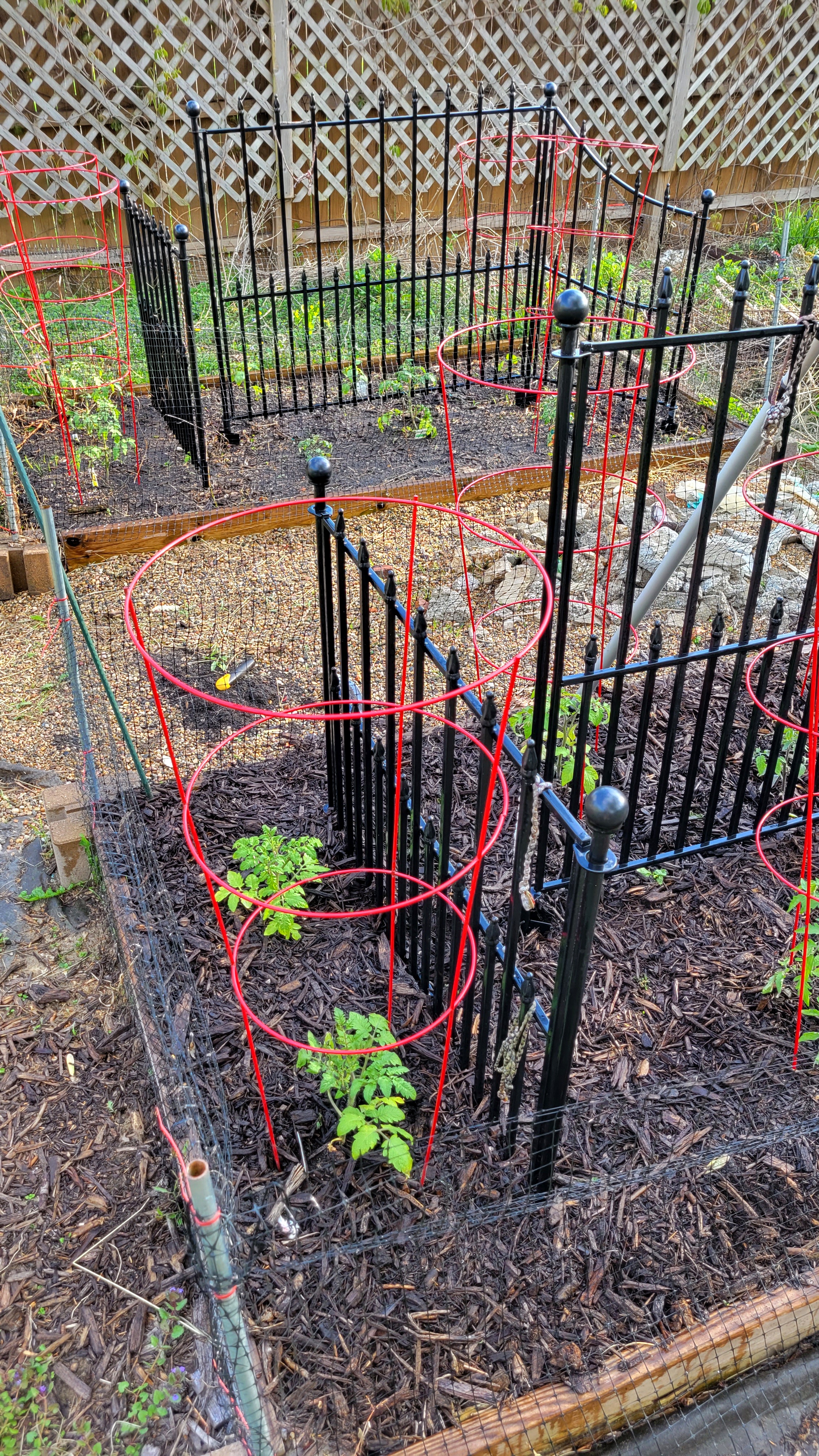 Last night was what I hope was our last frost of the season. I covered the tomato beds with sheets to keep them safe. One of the Green Zebra plants has some frost damage, but everything else looks great, growing right along.
