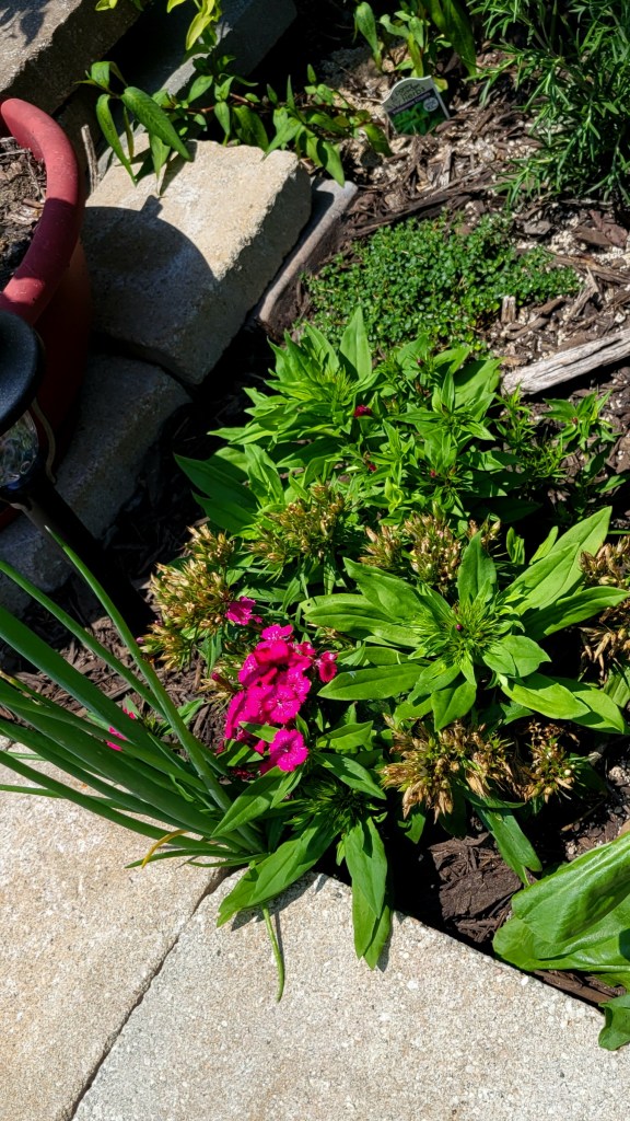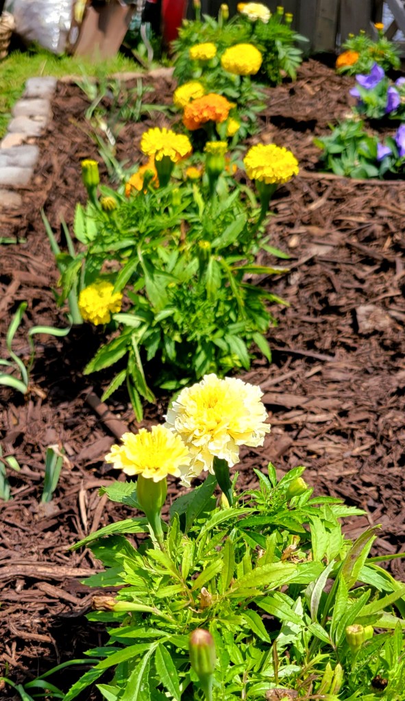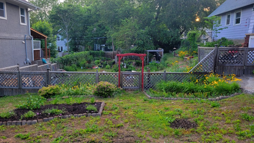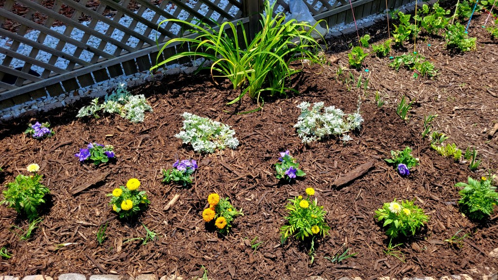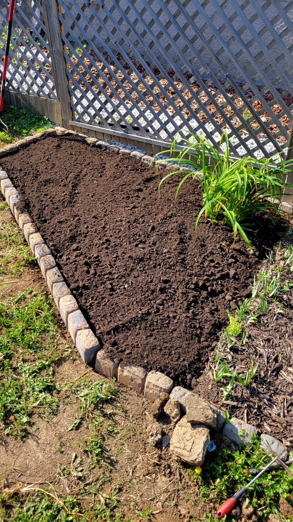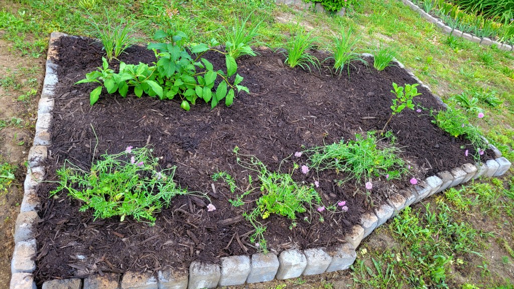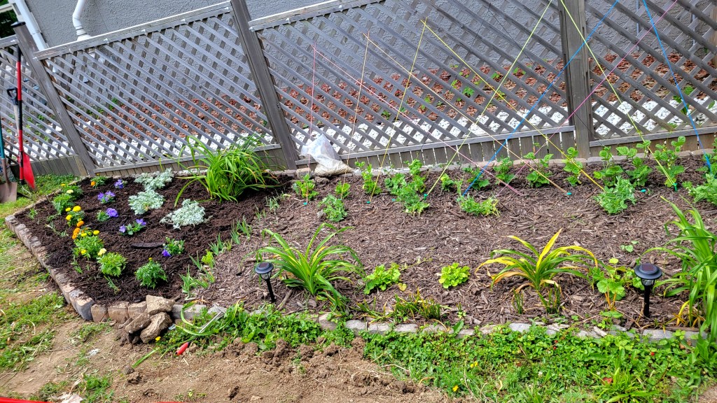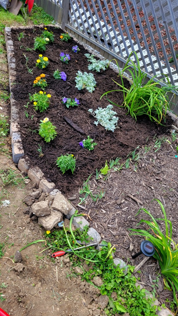 I have been busy in the garden: weeding, planting, tending, expanding. I have added two news flower beds, well, a new bed in front of the garden fence and expanded another behind it.