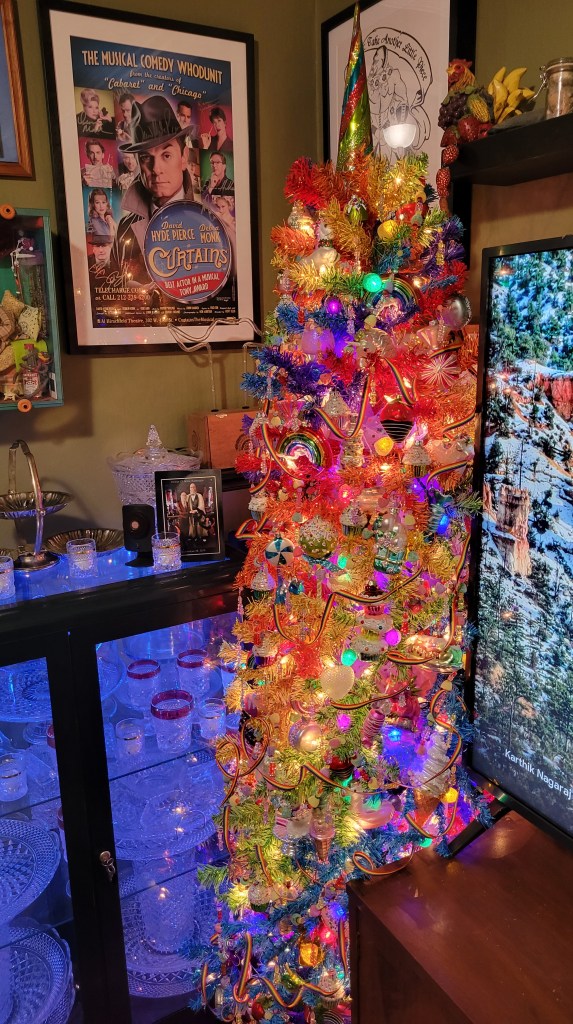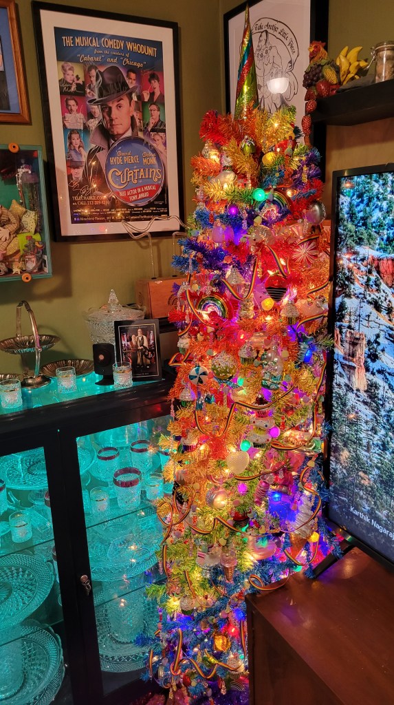 In all, I’m excited for the brightness this tree brings into our TV room. And, yes, I programmed the cabinet’s lighting to match.