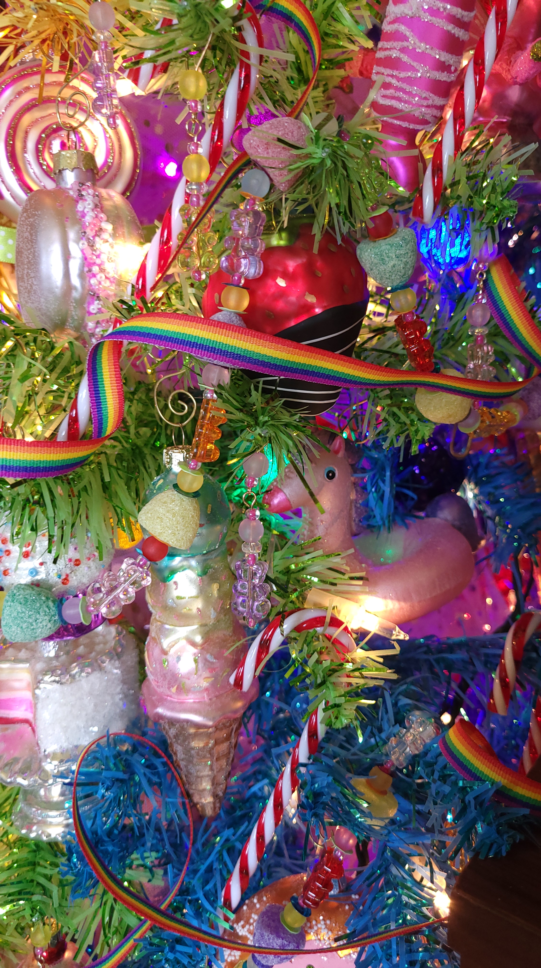 Second tree up, but first one finished is the Unicorn Tree, now on a glittery rainbow tree:
