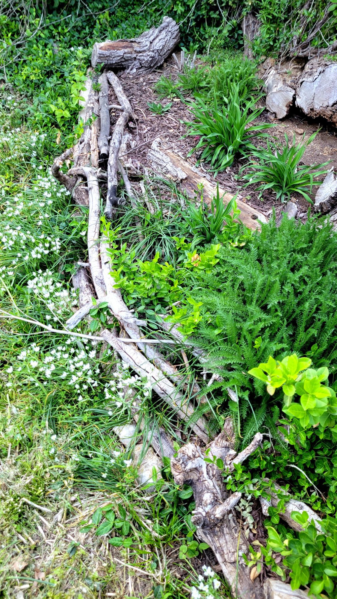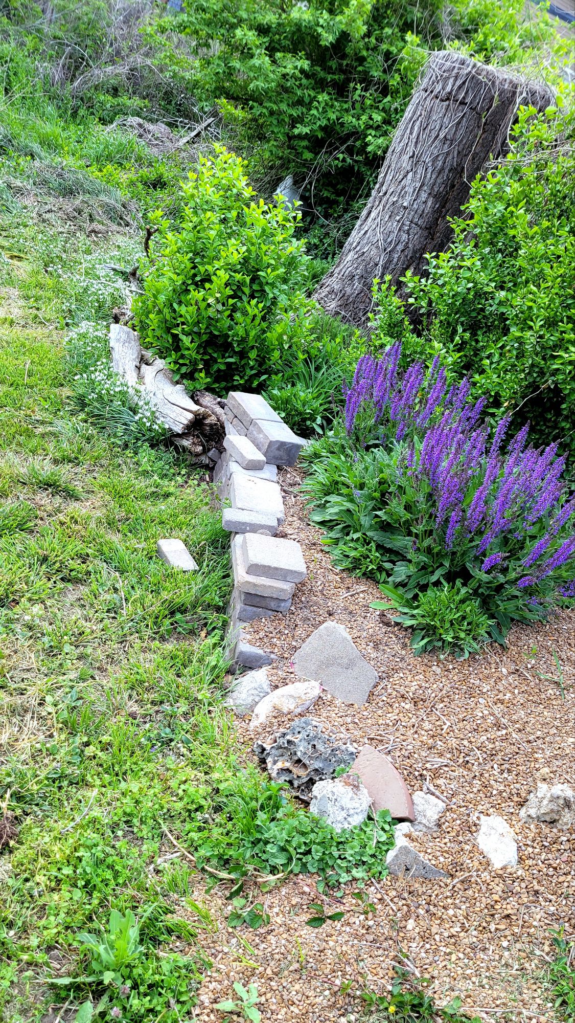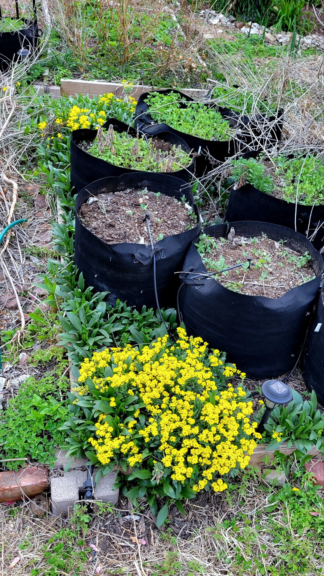 So it goes down in the garden lot. Except that, this year, even with all the dead noxious overgrowth from last fall, the garden is full of life, and color.