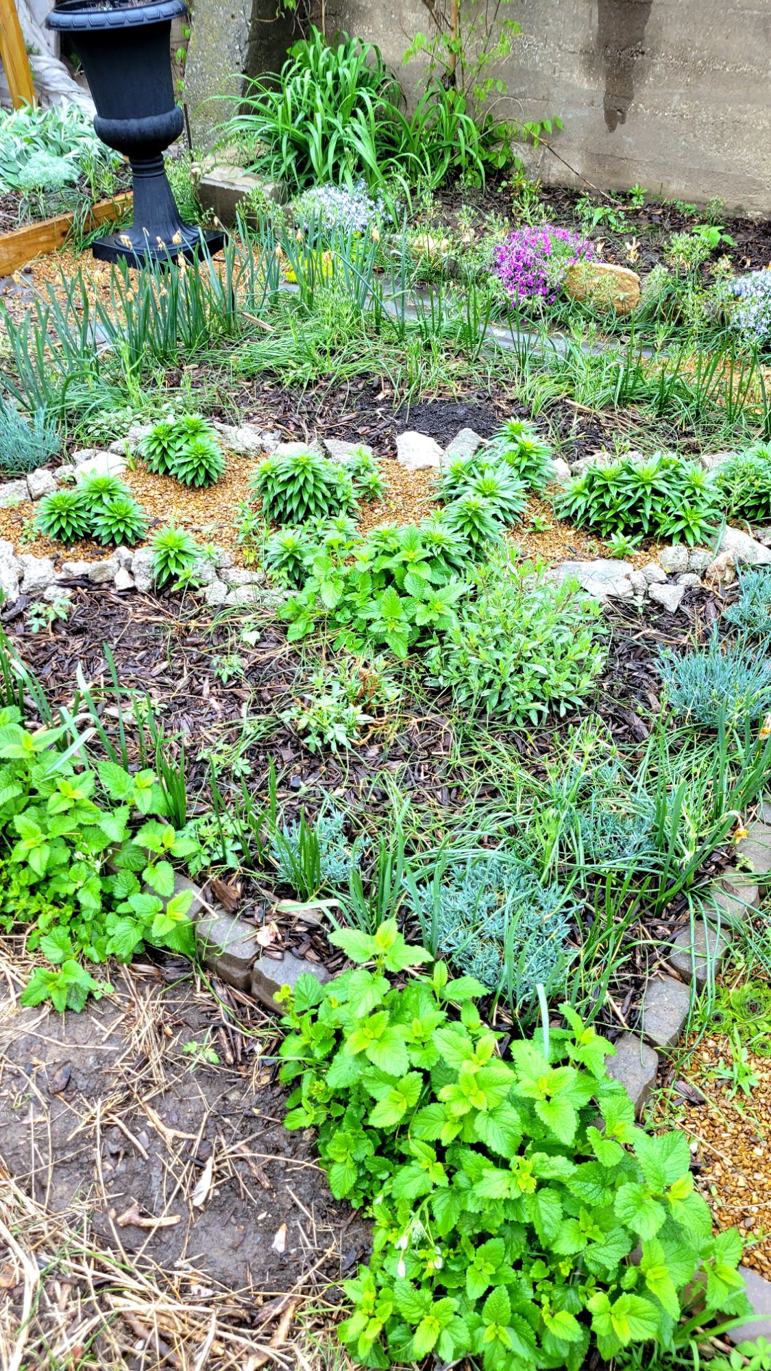 The rain this weekend made for a messy but productive time in the garden. Planting gets muddy, but weeding is easy-peasy.