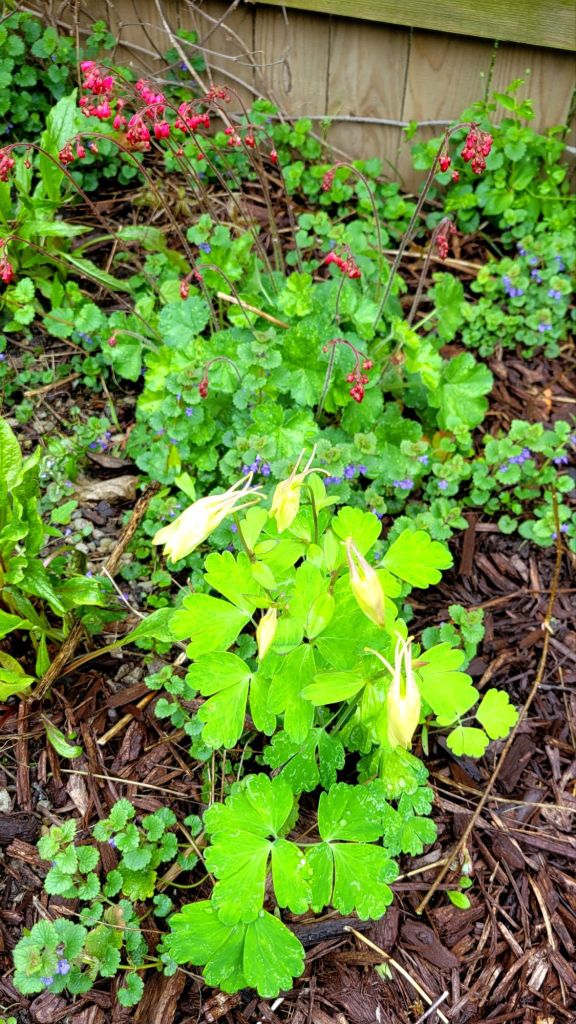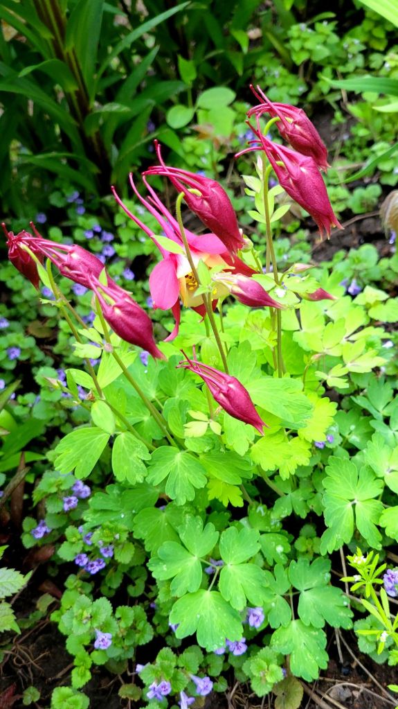 the columbine are the first blooms