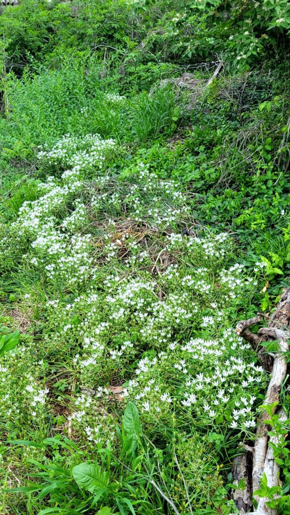 through the creepy phlox, ground ivy,