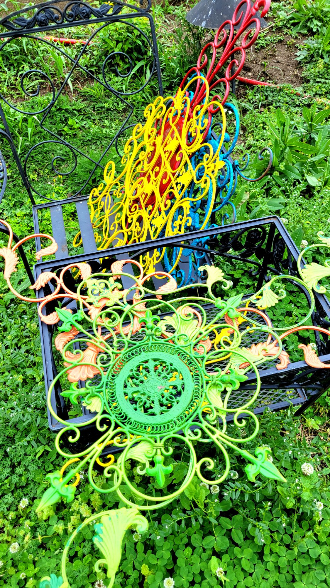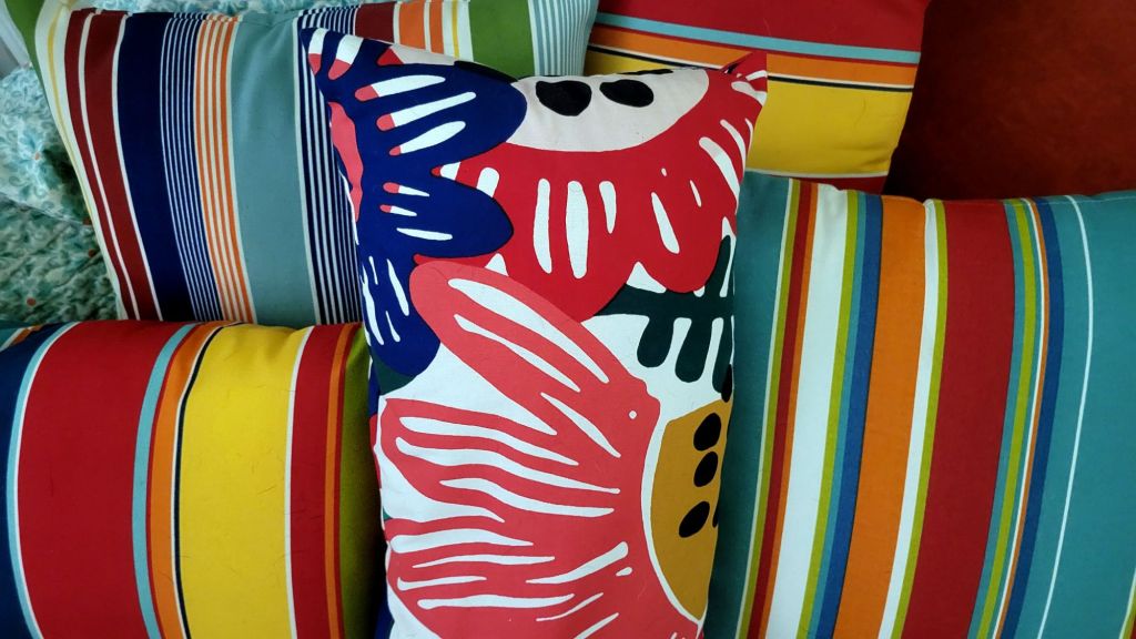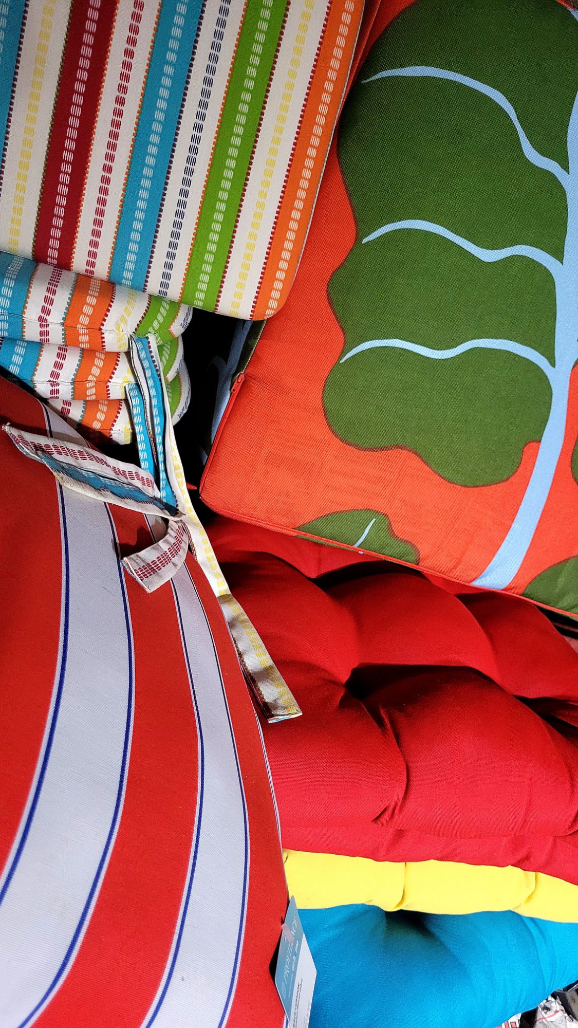 I have seat and, where needed, back cushions for the garden furniture we have currently, a nice mix of solid, stripe, and print.
