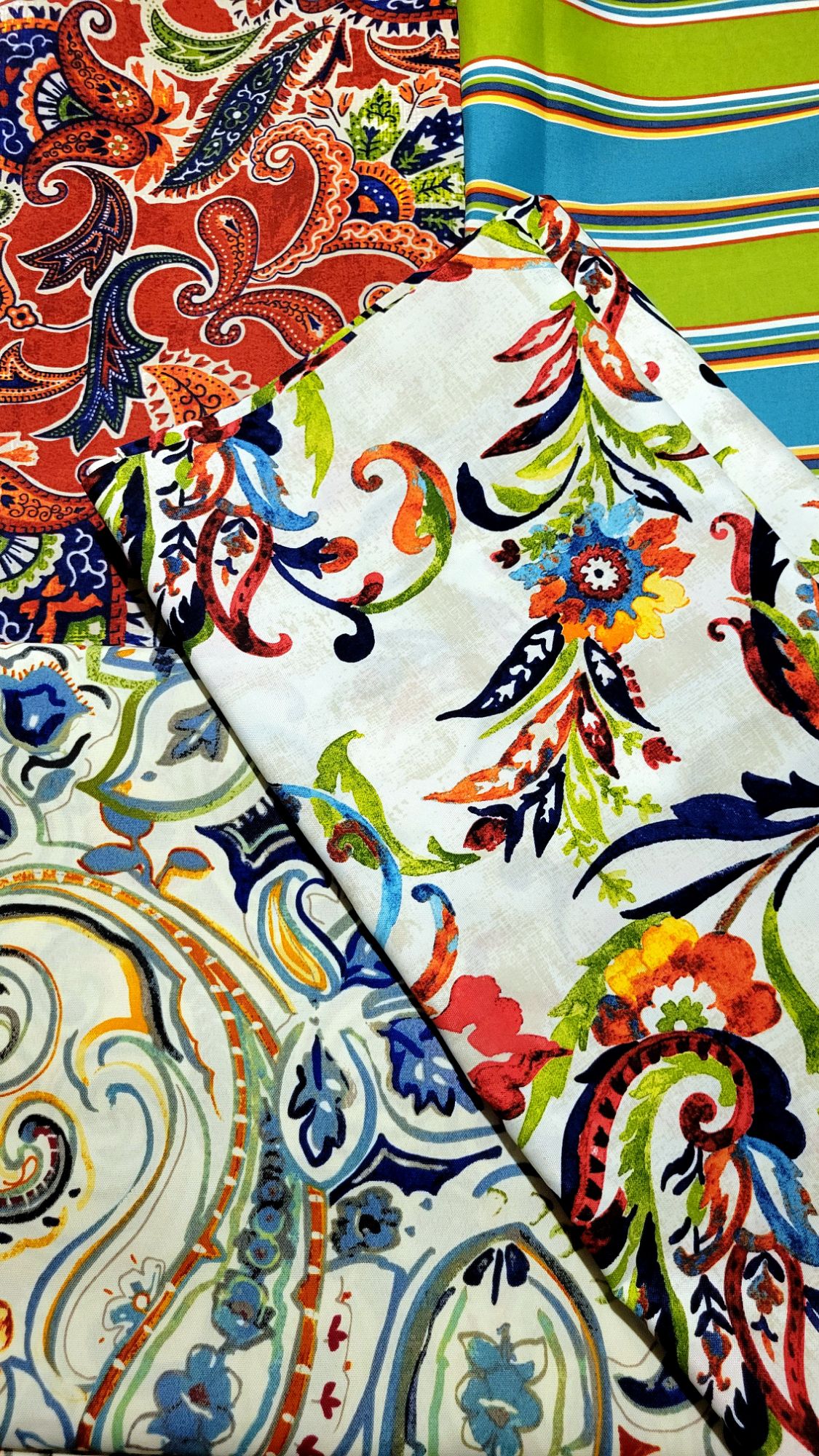 Yesterday, I stopped at a local JoAnn to see if there was fun stuff left in their closing sale. I almost left empty-handed but noticed a batch of UV protected outdoor fabrics. 80% off.